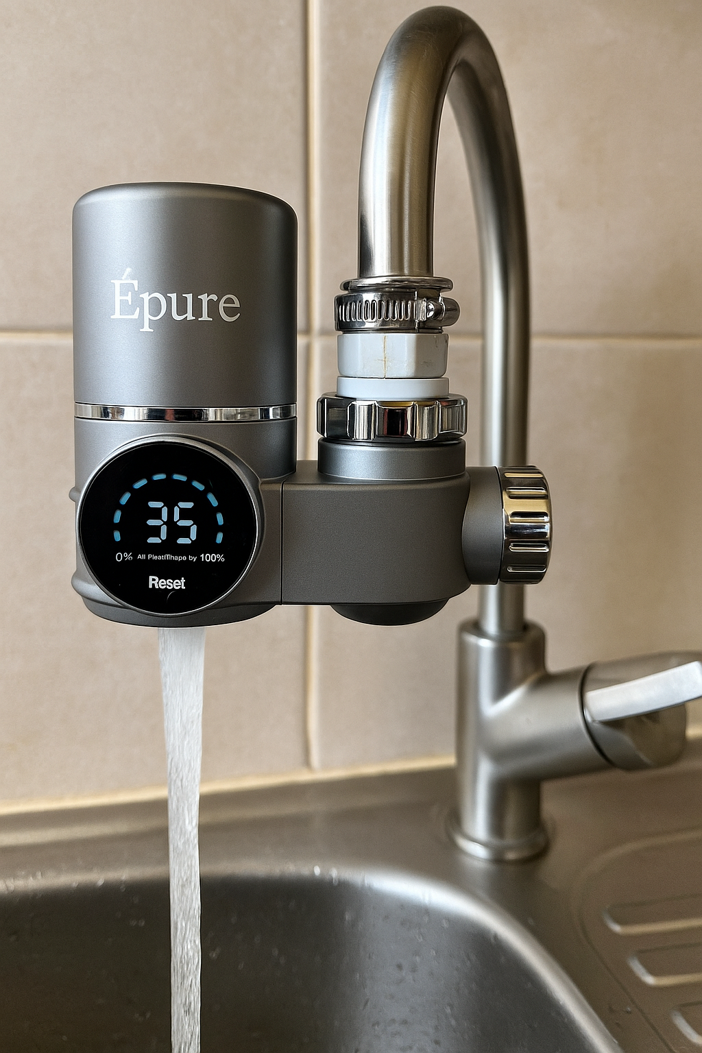 בעזרת פילטר פחם פעיל מתקדם, Épure מסייע להפחית מזהמים מזיקים במים, כך שהעור נשאר רך יותר והשיער חזק ובריא יותר.